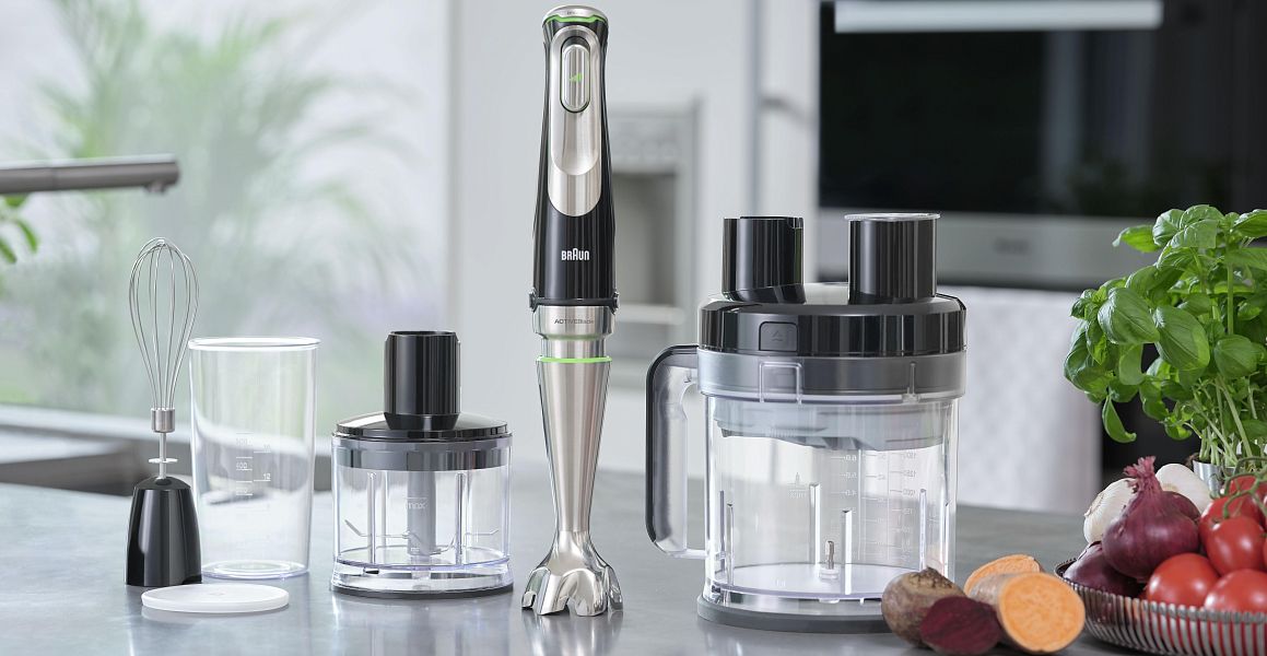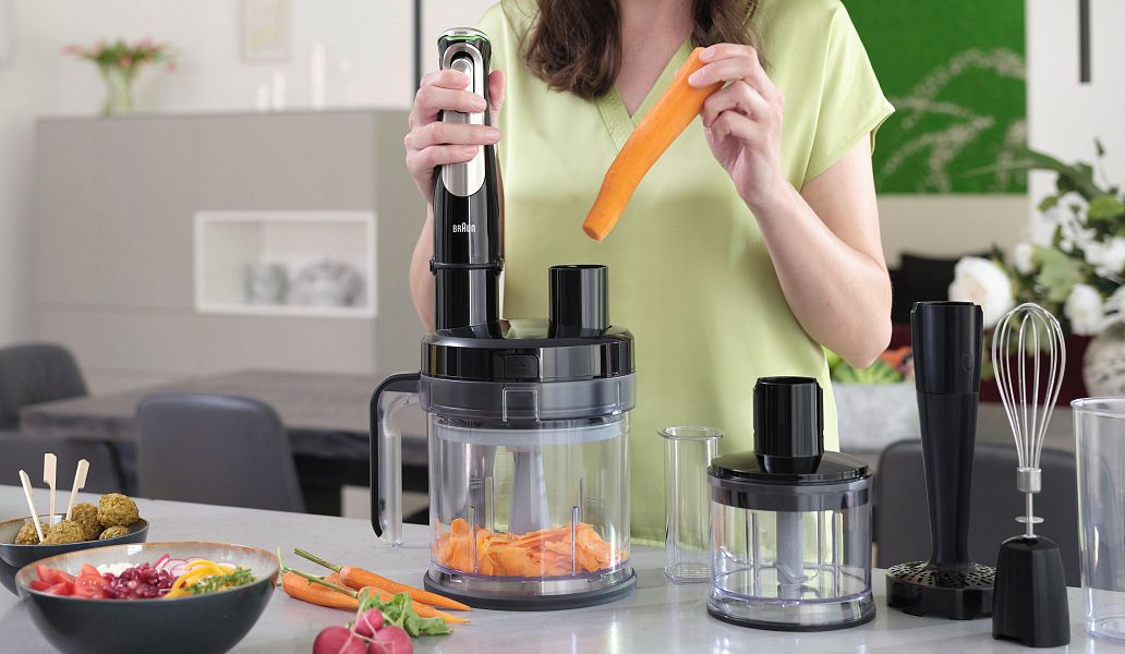 Блендер Браун Мультиквик MQ9195 легко управляется одной кнопкой — скорость регулируется силой нажатия.