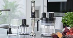 Блендер, погружная нога, венчик для взбивания, измельчитель 500мл.,большой кухонный комбайн 2л., насадка для нарезки соломкой, насадка для замешивания теста, насадка для колки льда, насадка для нарезки кубиками, насадка для тонкой нарезки, насадка для грубой нарезки, насадка для тонкого измельчения, насадка для грубого измельчения, насадка для жюльена.
